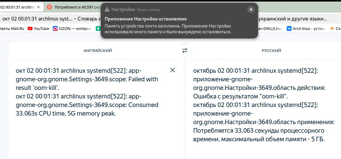 пожалуйста подскажите из за чего? арч линукс 8гб озу