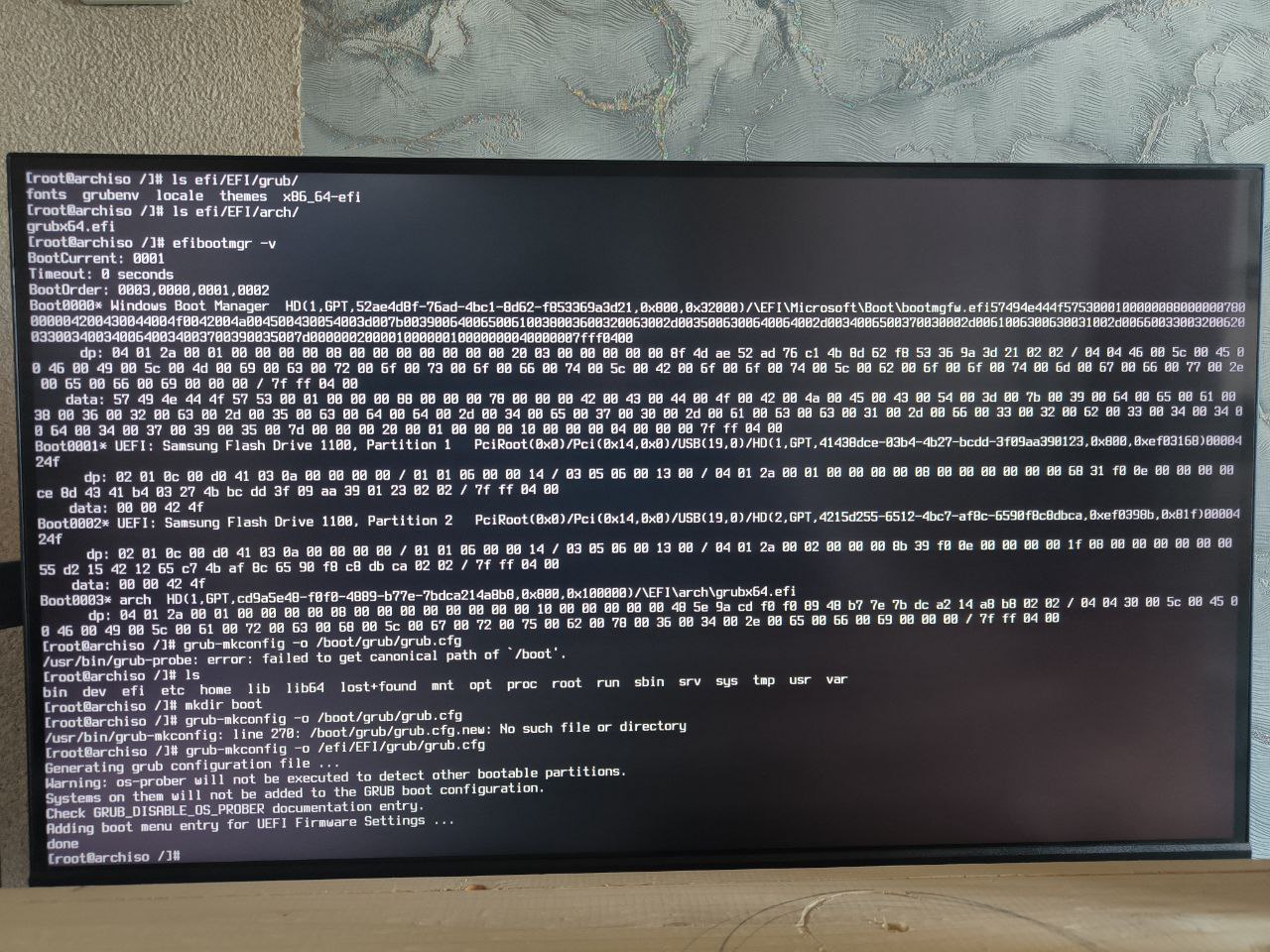 директории boot ведь не где взяться, я устанавливал в efi. как теперь генерить конфиг? в гайде арч вики написано что команда должна быть такой